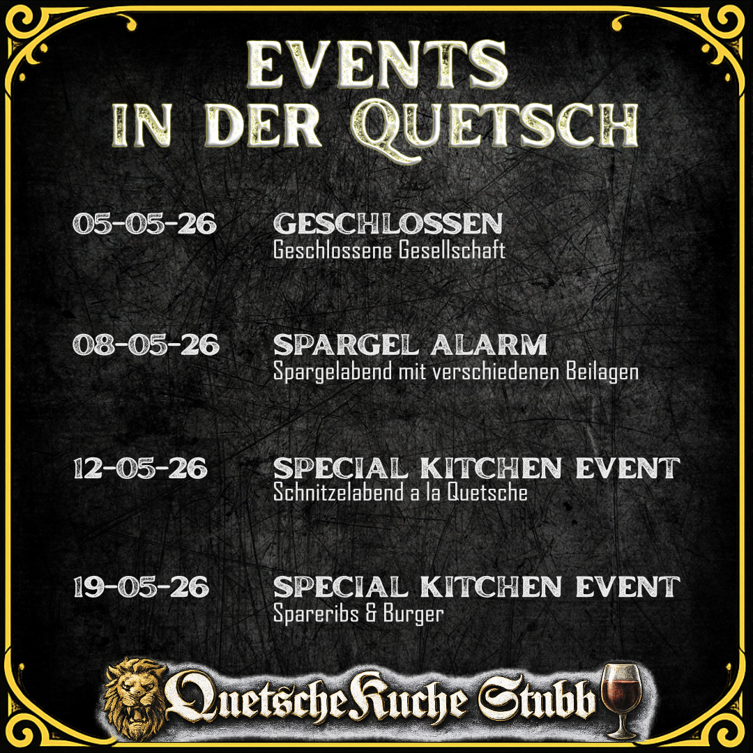 Am Freitag, dem 08-05-2026 ab 18:00 UHR, könnt ihr bei uns in der Quetsche Kuche Stubb ein leckeres Spargelmenü genießen.